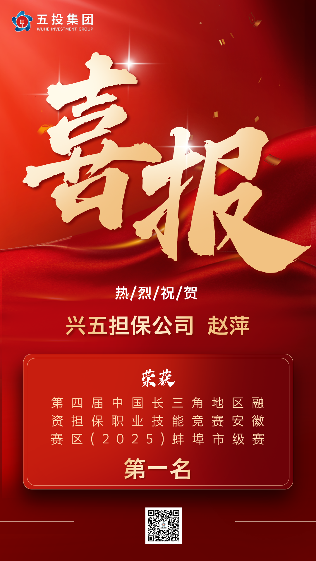 此次获奖,为五投集团及兴五担保公司赢得了荣誉。根据赛事安排,赵萍将代表蚌埠市参加于10月下旬举行的省级选拔赛,并向晋级第四届中国长三角地区融资担保职业技能竞赛的资格发起冲击。我们预祝她在后续的比赛中再接再厉,再创佳绩!五投集团及兴五担保公司也将以此为契机,持续激发员工钻研业务、提升技能的热情,为服务地方经济、促进普惠金融发展贡献更大力量。
