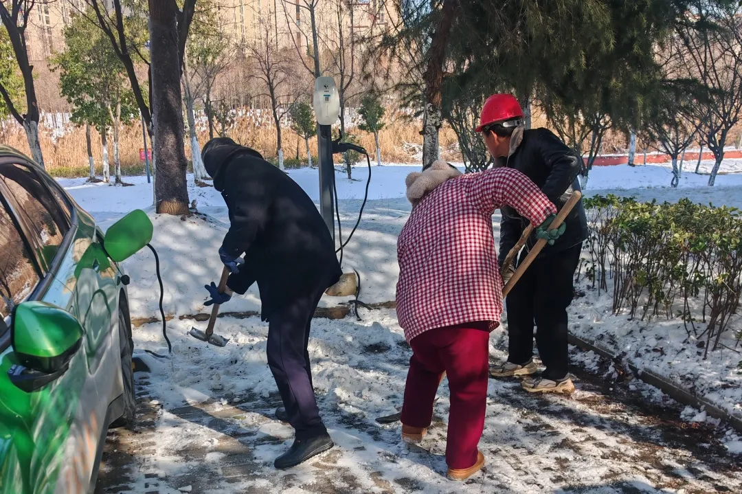 为保障雪后新能源设施稳定运行,绿色能源公司对各充电站及屋面分布式光伏进行专项巡查。及时清理充电设备及周边积雪,检查电气线路,确保电动汽车充电服务安全、顺畅。