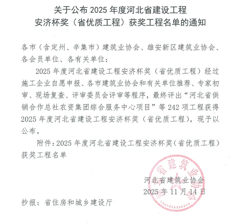 “安济杯奖”是河北省建设工程质量的最高荣誉,代表行业对工程品质的充分肯定。此次获奖,体现了项目在工程质量、施工组织、技术应用等方面的扎实成果,也展现了五投集团秉持的“匠心筑家、品质为民”开发理念。
